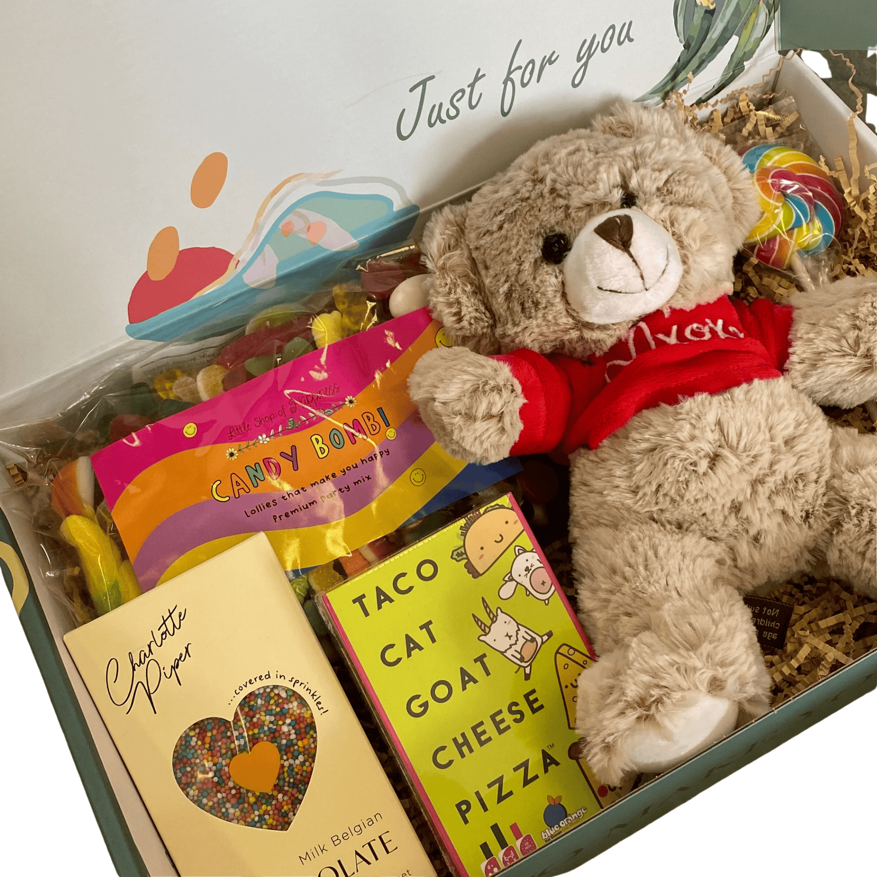 A cheerful kids gift hamper filled with fun surprises, perfect for birthdays, rewards, or just because.