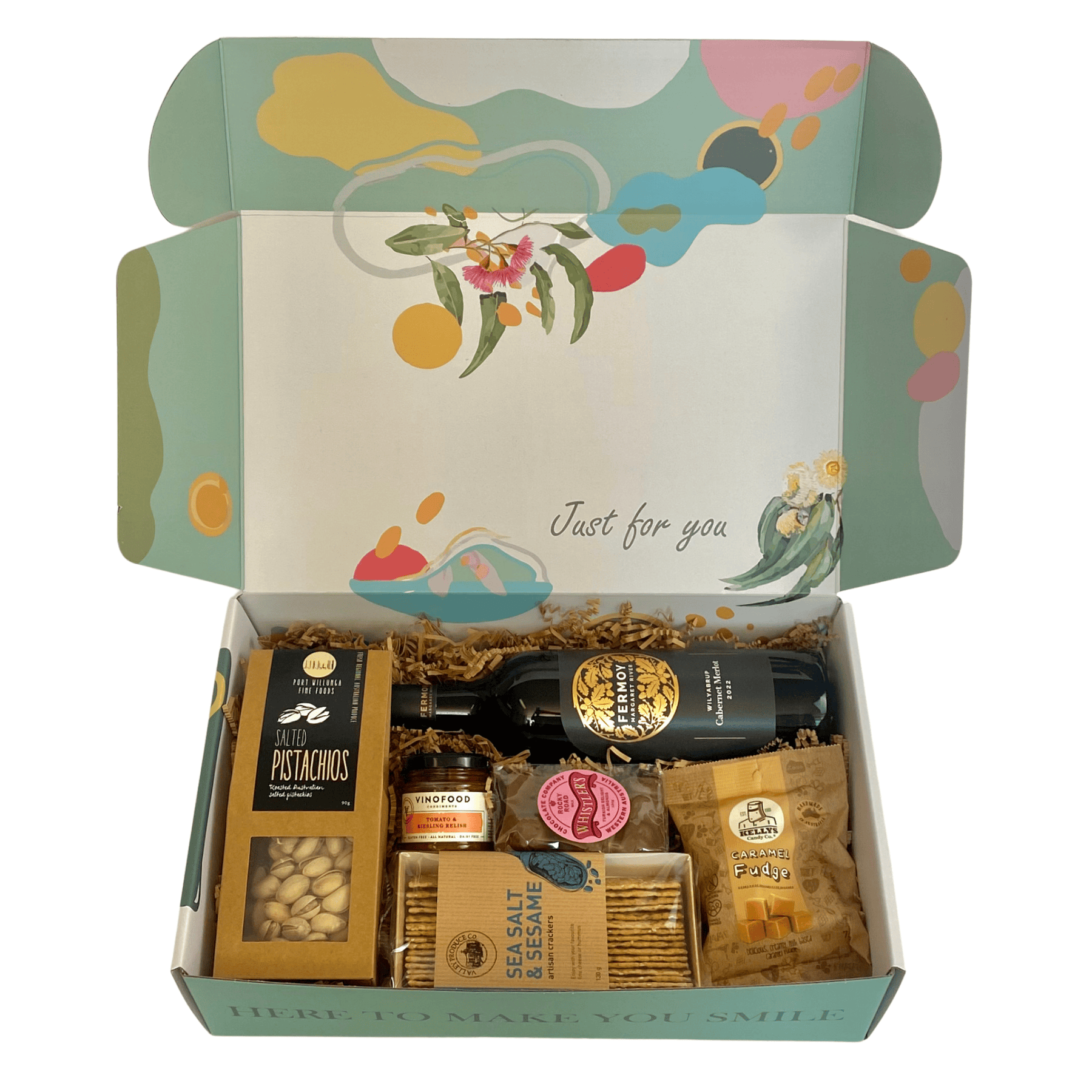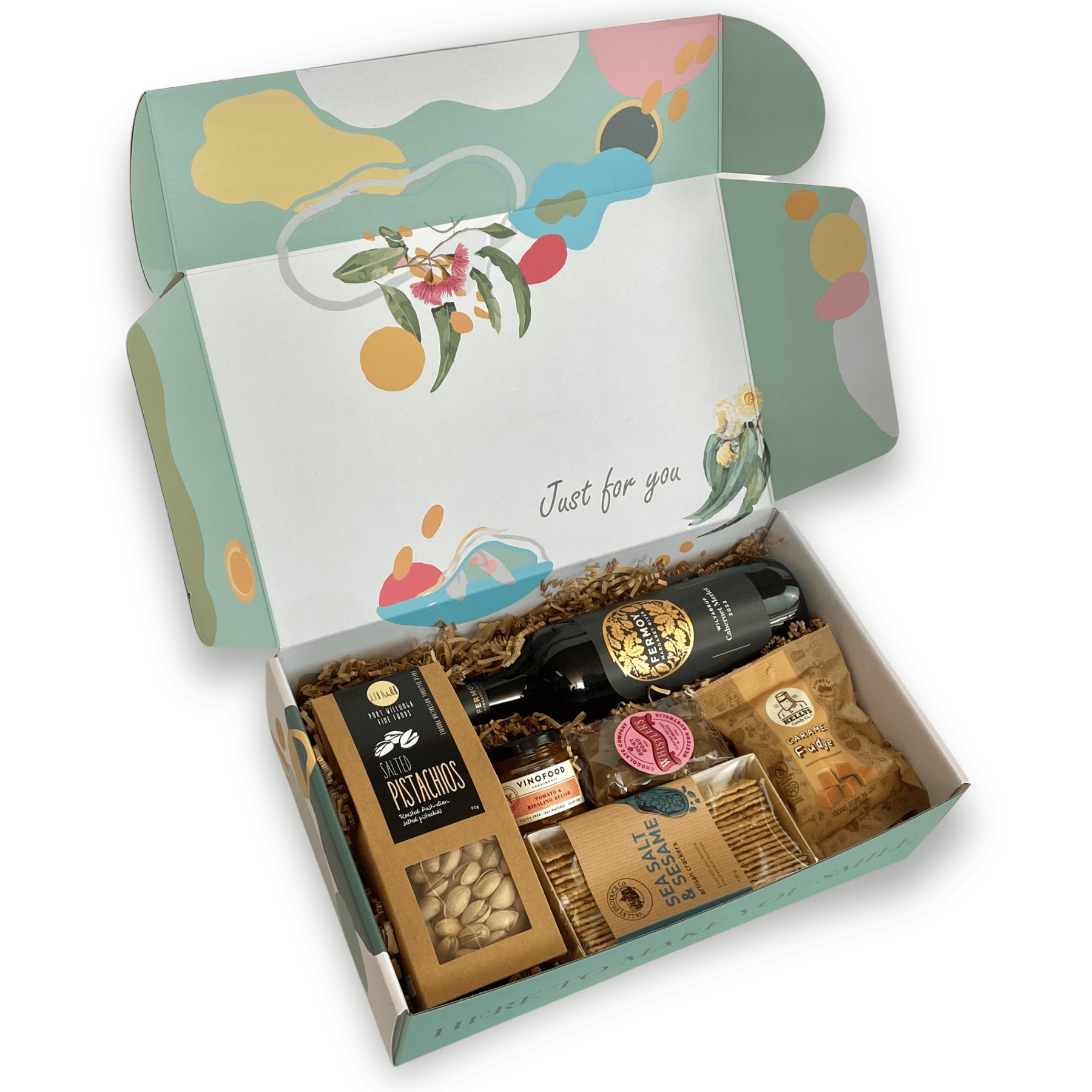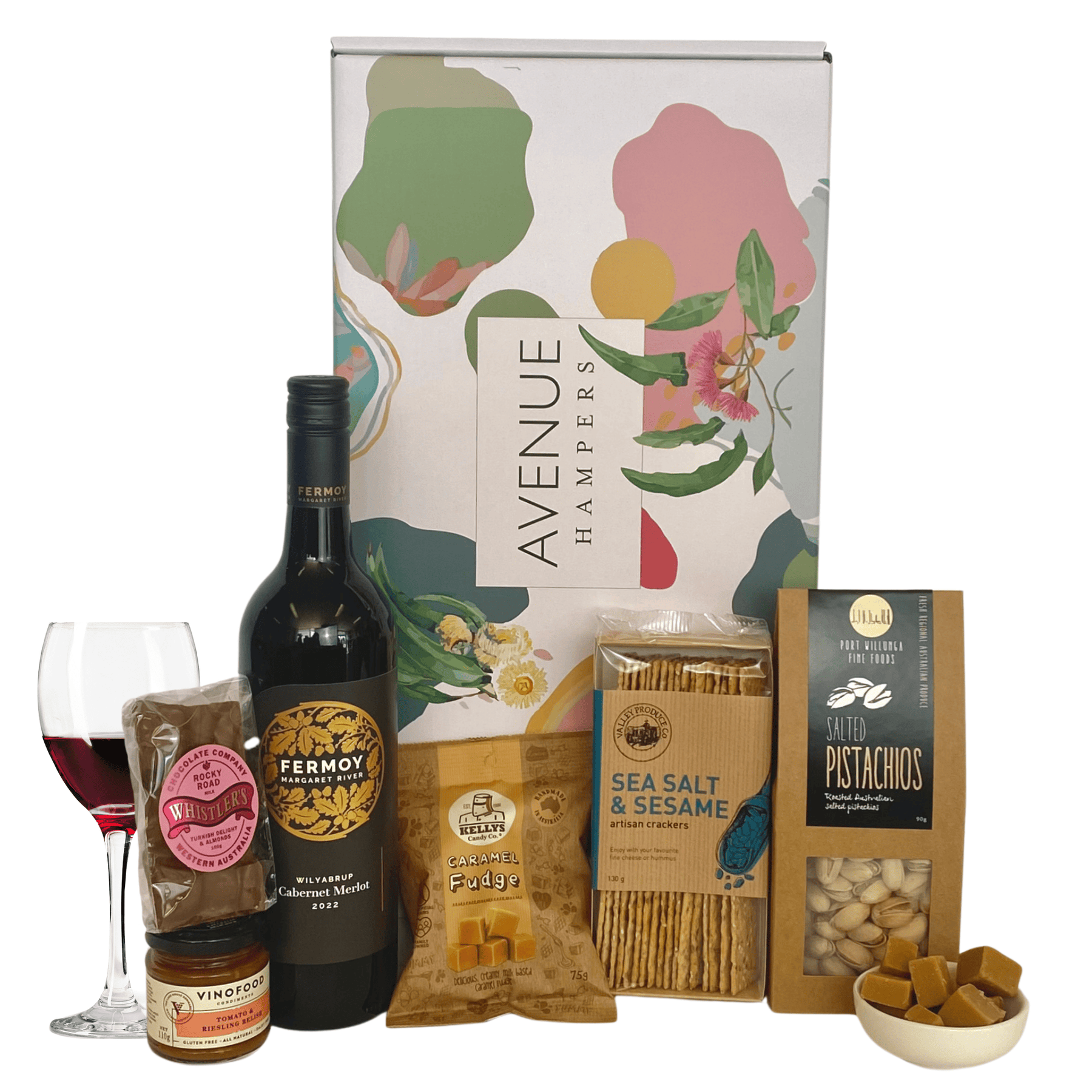 This premium appreciation gift hamper features a delicious selection of gourmet treats paired with award-winning Fermoy Margaret River wine. Choose from red, white, or rosé wine, Myattsfield Sparkling or non-alcoholic to suit their taste, making it a versatile and well-received gift for any occasion.